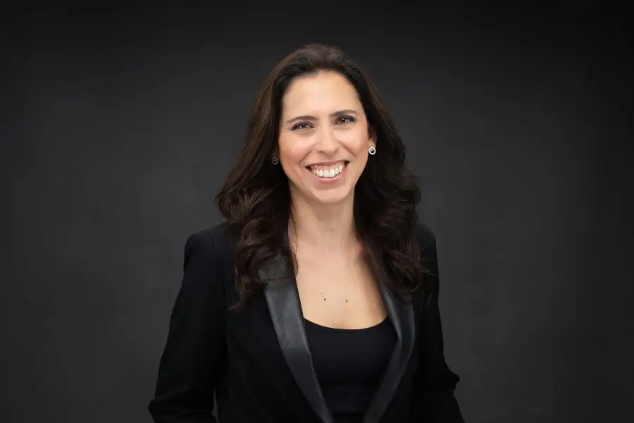 Coach Lourdes Monteiro sentada numa cadeira sorrindo para a câmara